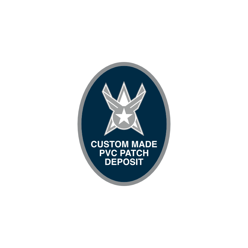 Deposit for PVC custom patch order. After the mold proof is approved, this deposit is NON-REFUNDABLE. On the Checkout page please put the quantity and patch you are ordering (e.g. – “100x Space Delta 3 PVC Patches”) in the “Additional Information”, “Order Notes” text box.